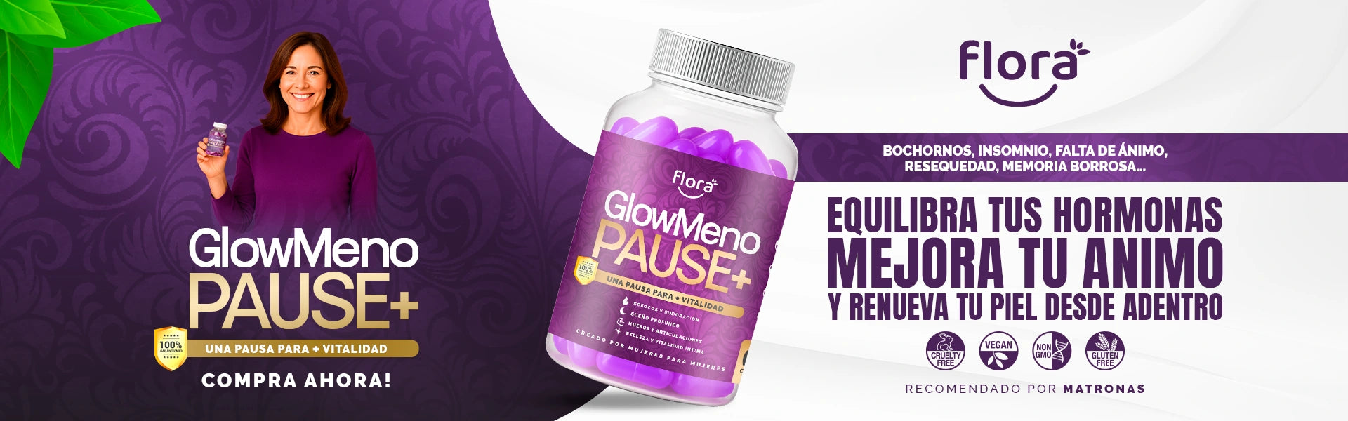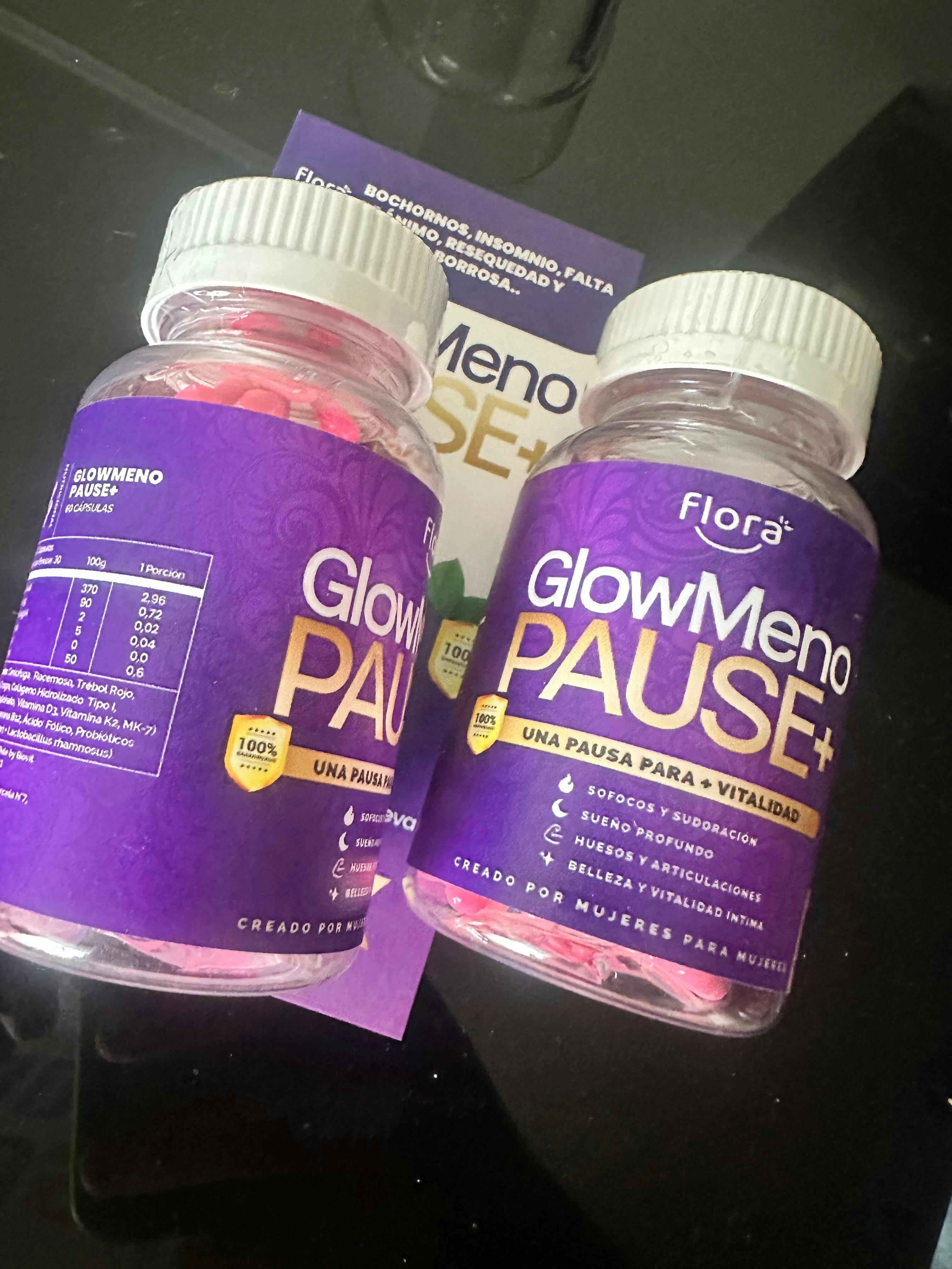 GlowMeno Pause+ es un suplemento natural diseñado especialmente para acompañarte durante la menopausia y el climaterio. Su fórmula avanzada combina extractos botánicos, vitaminas, minerales y probióticos que ayudan a equilibrar las hormonas, reducir sofocos e insomnio, mejorar el ánimo, y mantener tu piel, huesos y articulaciones fuertes.